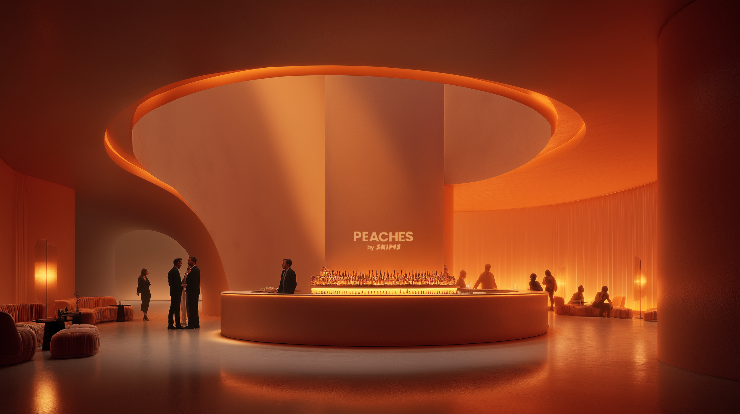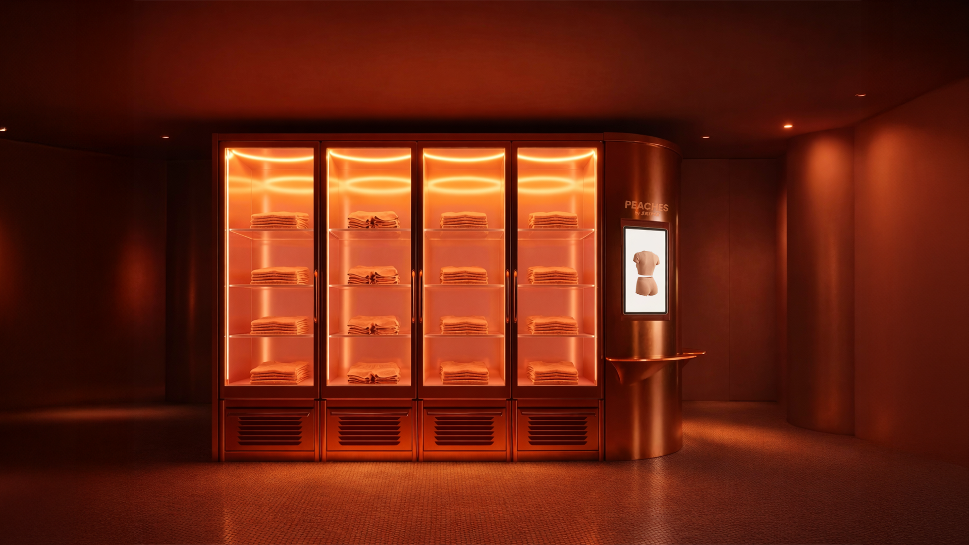 Skims drops an exclusive peach fuzz line which is worn by the waitresses and can only be bought only on location at the SKIMS vending machine.