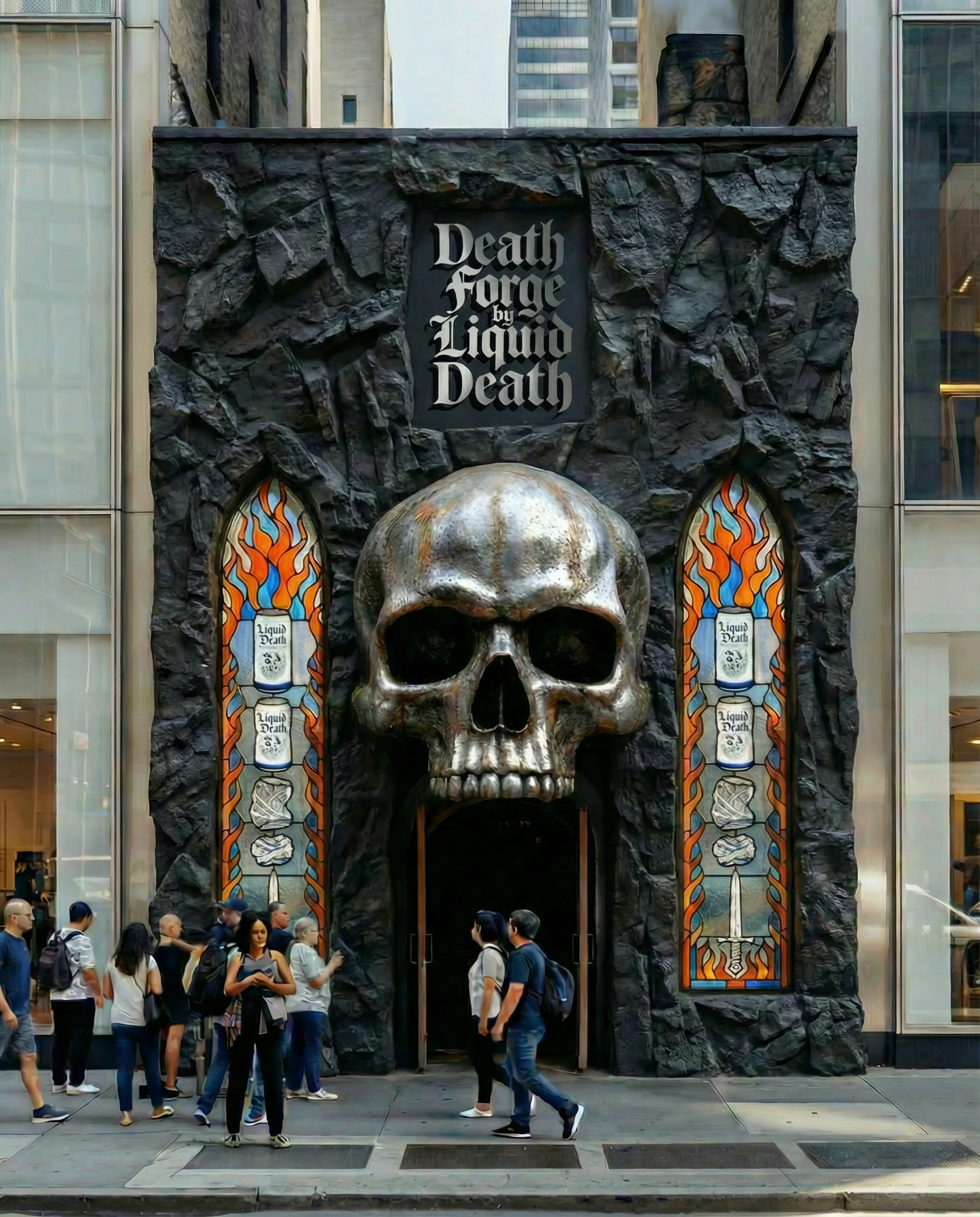 For those who dare to journey to the Death Forge, they will have opportunities to test out all of the weapons in the Furnace of Fury, a rage room featuring a wide host of breakables. Afterwards they can cool off with any one of Liquid Death’s waters.